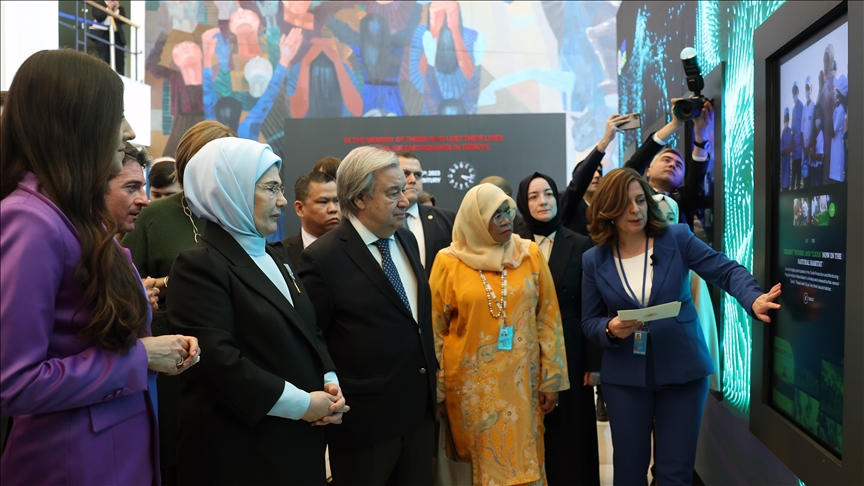 Erdoğan ve Guterres ile beraberlerindeki heyet, Çevre, Şehircilik ve İklim Değişikliği Bakanlığı Daire Başkanı Sadiye Bilgiç tarafından Türkiye'nin 2017'den bu yana Emine Erdoğan'ın öncülüğündeki sıfır atık girişimi çerçevesinde attığı önemli adımlar ve çalışmalarla ilgili bilgilendirildi.