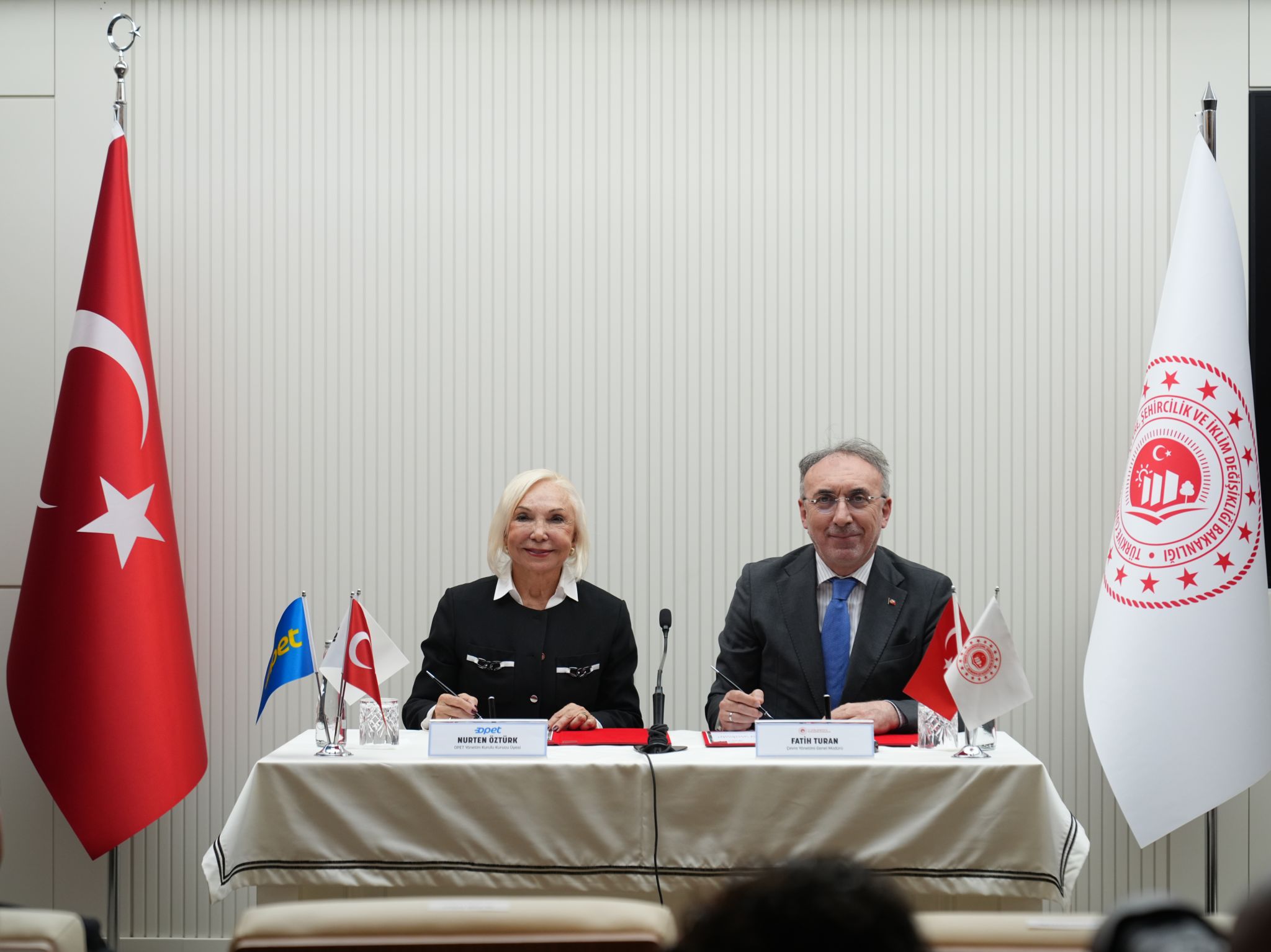 Konuşmaların ardından, Çevre Yönetimi Genel Müdürü Fatih Turan ile OPET Yönetim Kurulu Kurucu Üyesi Nurten Öztürk arasında iş birliği protokolü imzalandı.